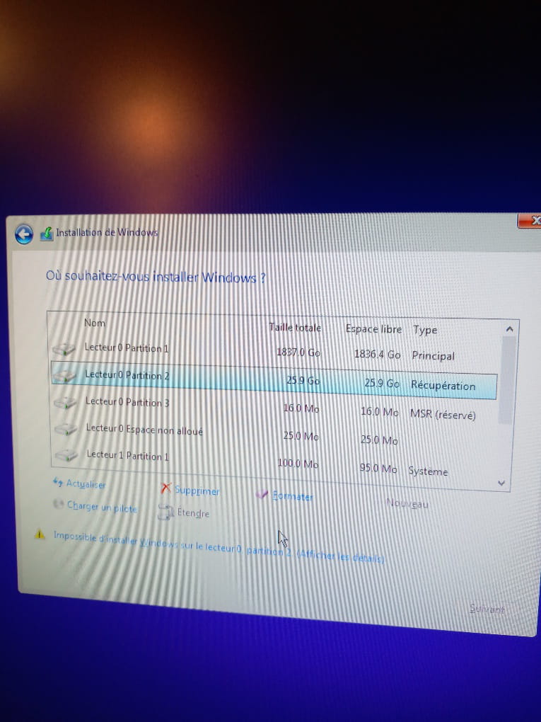 faut il supprimer des partitions car j'en ai 8 ? cela viendrait il de cela ?