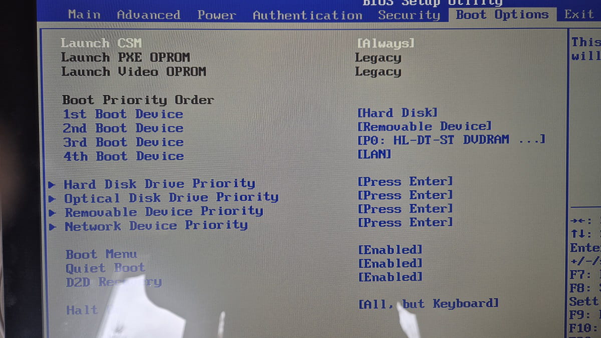 Je viens d'essayer de mettre "Secure Boot" sur Disable.