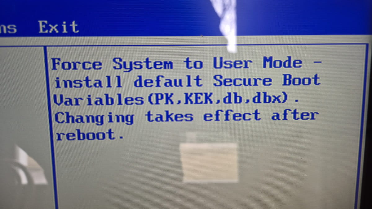 Quand je mets "secure boot mode" en custom, il a des options que j'ai essayé mais je ne sais pas trop à quoi elles servent et a priori ça n'a rien changé