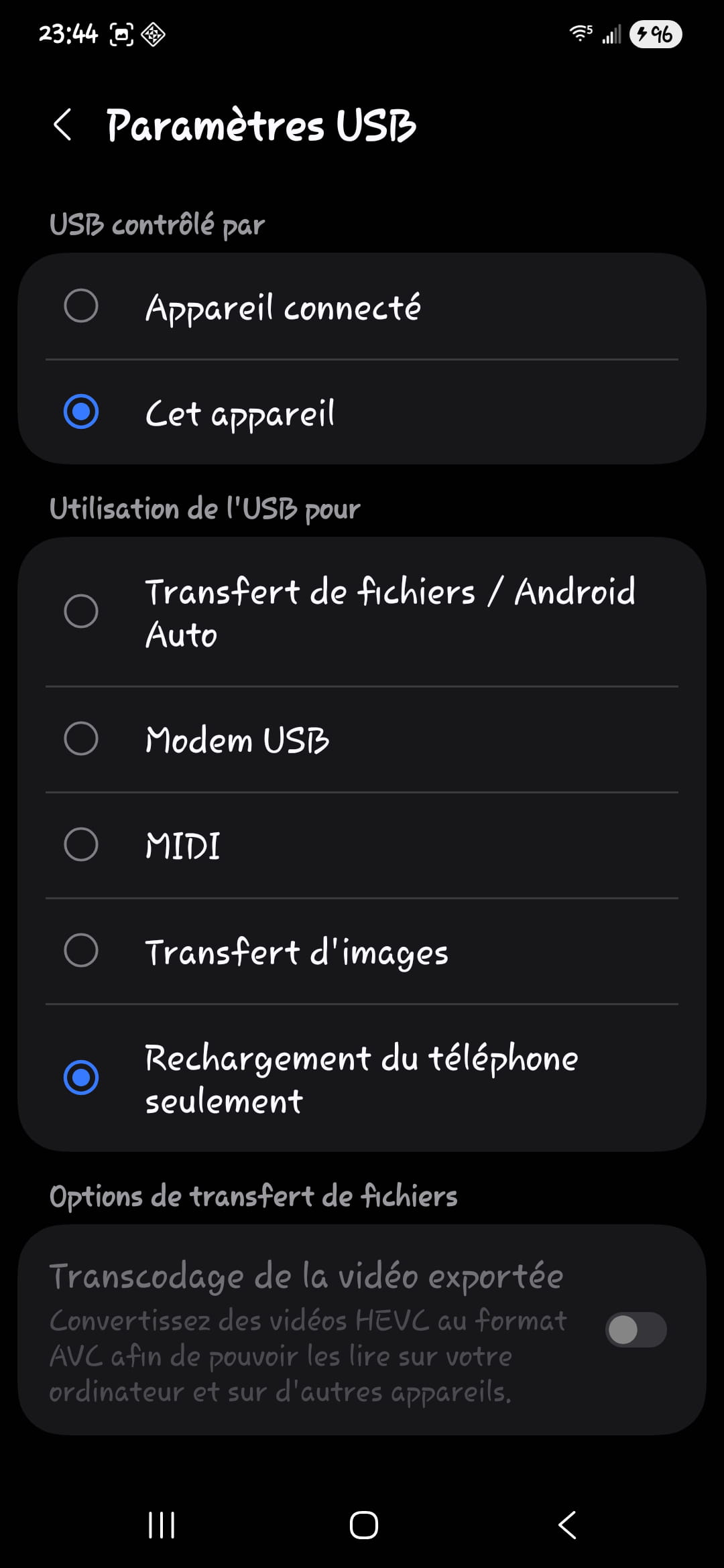 J'ai l'habitude de connecter mon téléphone Galaxy A33 à mon pc par cable usb pour afficher mes photos et fichiers, sauf, ce soir, cela ne fonctionne pas. Mon téléphone est bien en marche, et connecté, le nom du téléphone est affiché via la rubrique "mon pc", mais il est indiqué qu'il est vide.