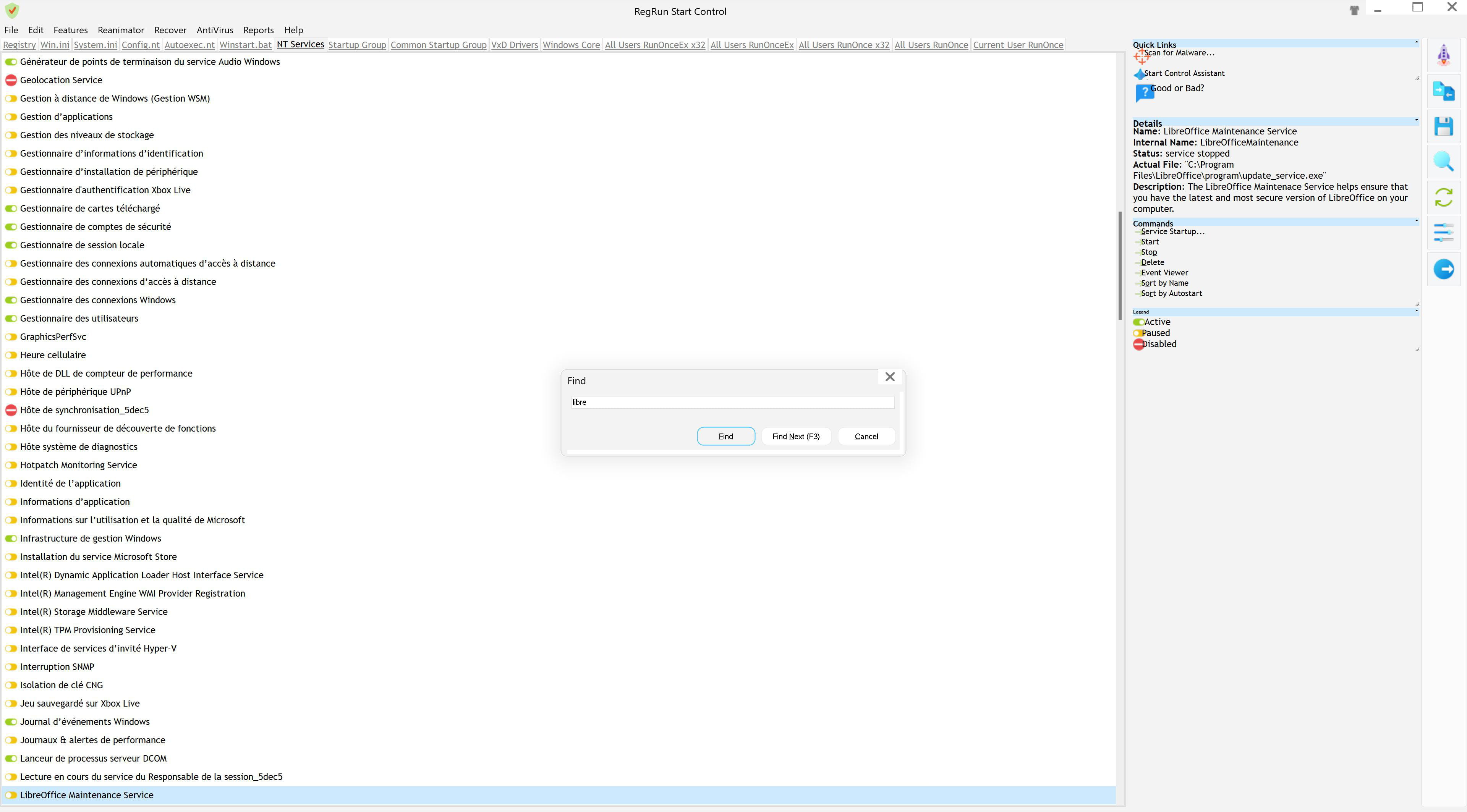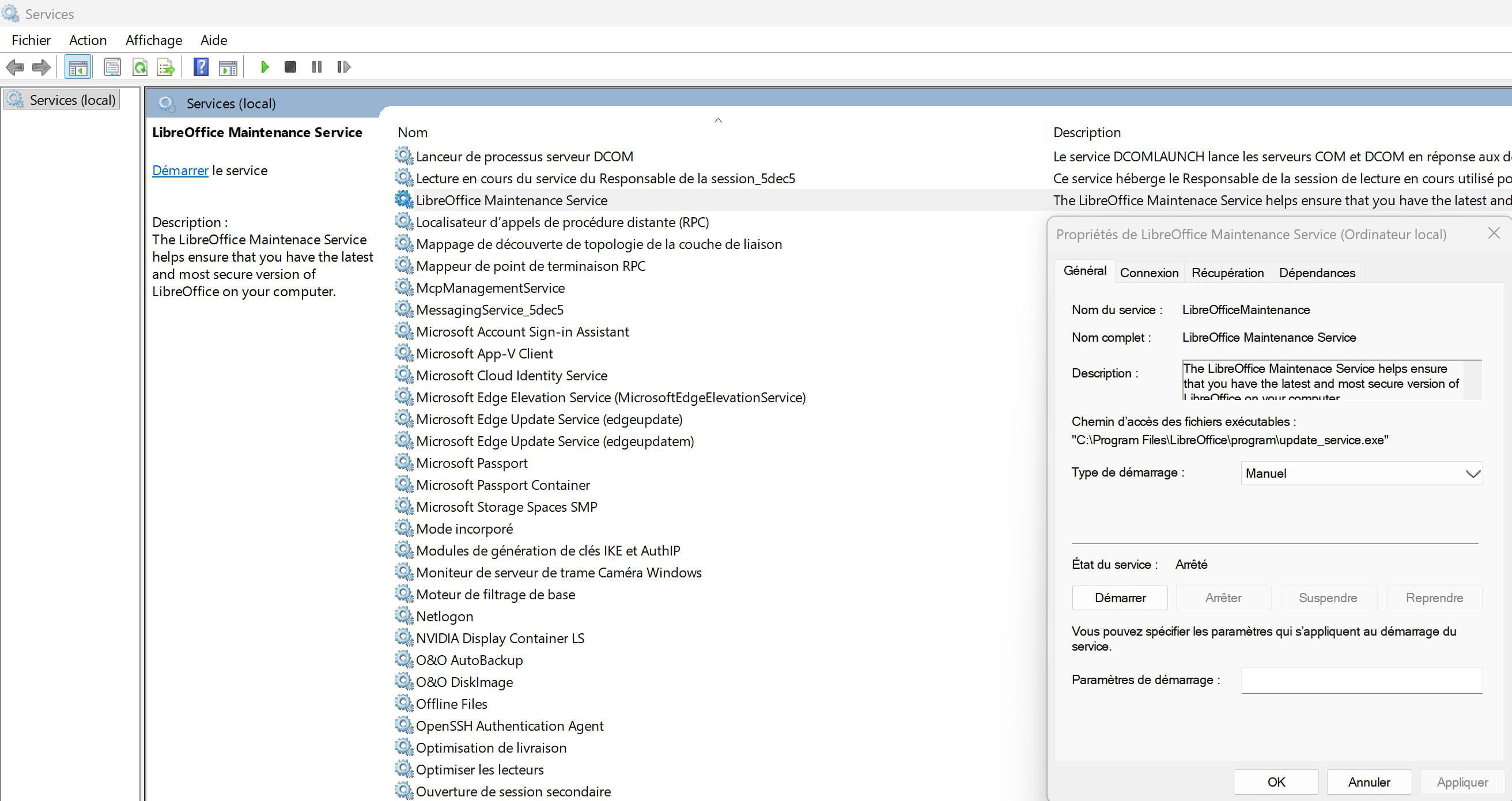Regardez dans Services.msc pour le service LibreOffice Maintenance Service