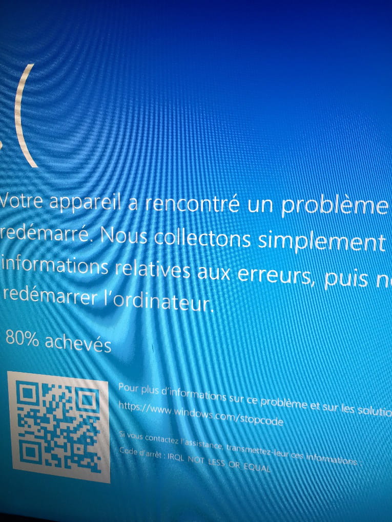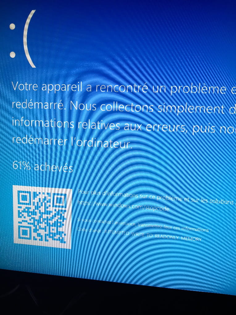 Posez votre questionCet écran bleu apparait d'emblé en marche ou lors du démarrage après un arrêt ?