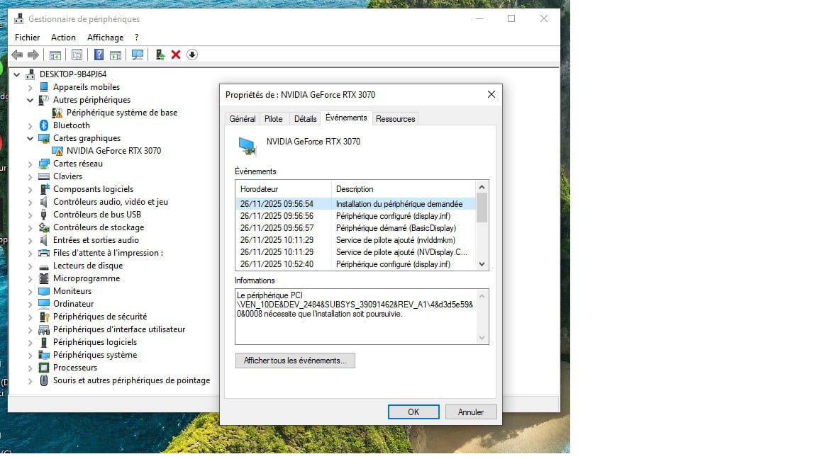 Qu'on voie de quel driver le problème viens si c'est un driver.