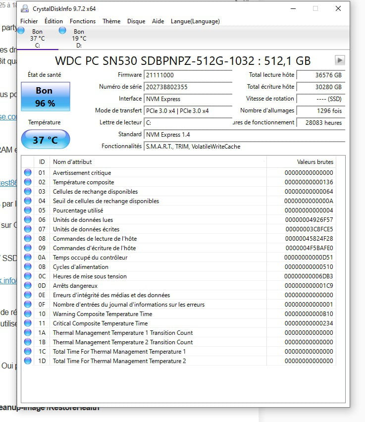 Vérifier le disque / SSD avec CrystalDiskInfo (C'est peut être le bobo)