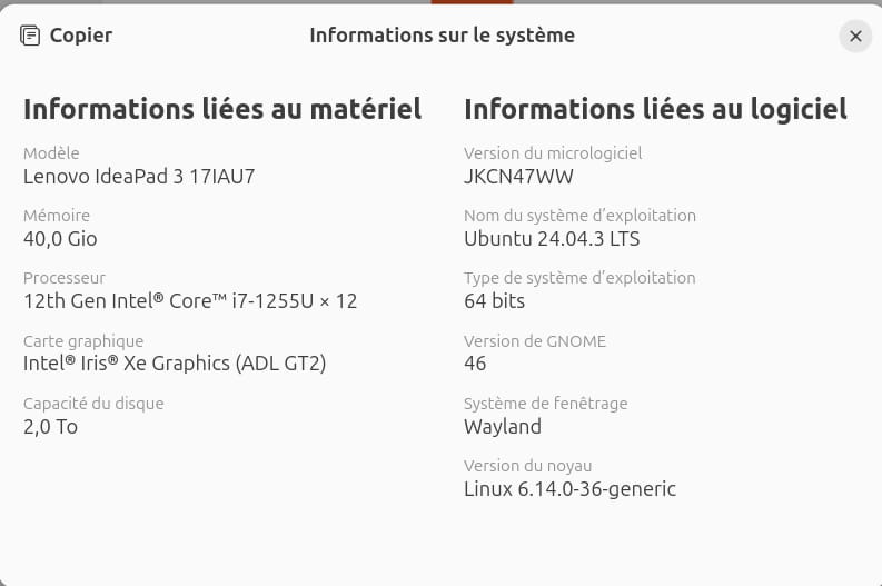 Je l'ai utilisé une journée, avant d'installer Ubuntu 24.04, à partir d'une clé USB bootable.