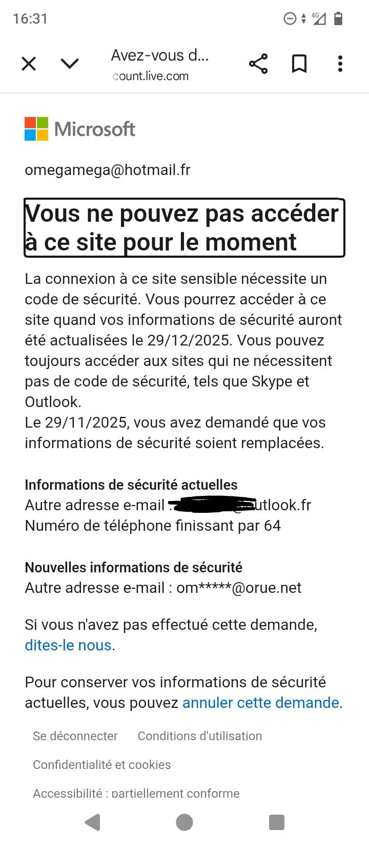 Cette page est une mesure préventive de Microsoft par rapport à une ou plusieurs tentative(s) de modifier vos informations de compte.
