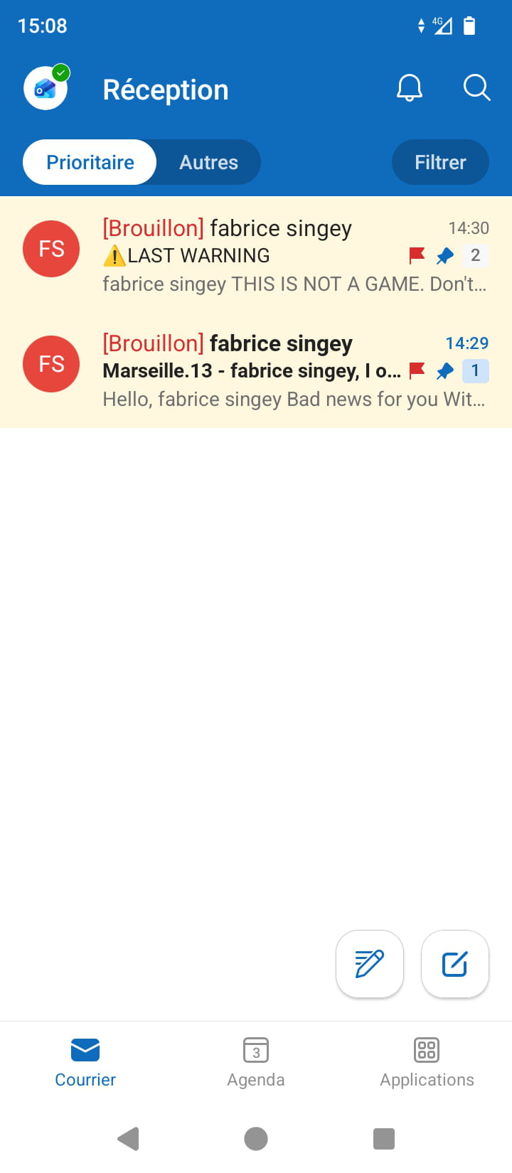 J'ai juste des messages en brouillon voir la photo envoyée.