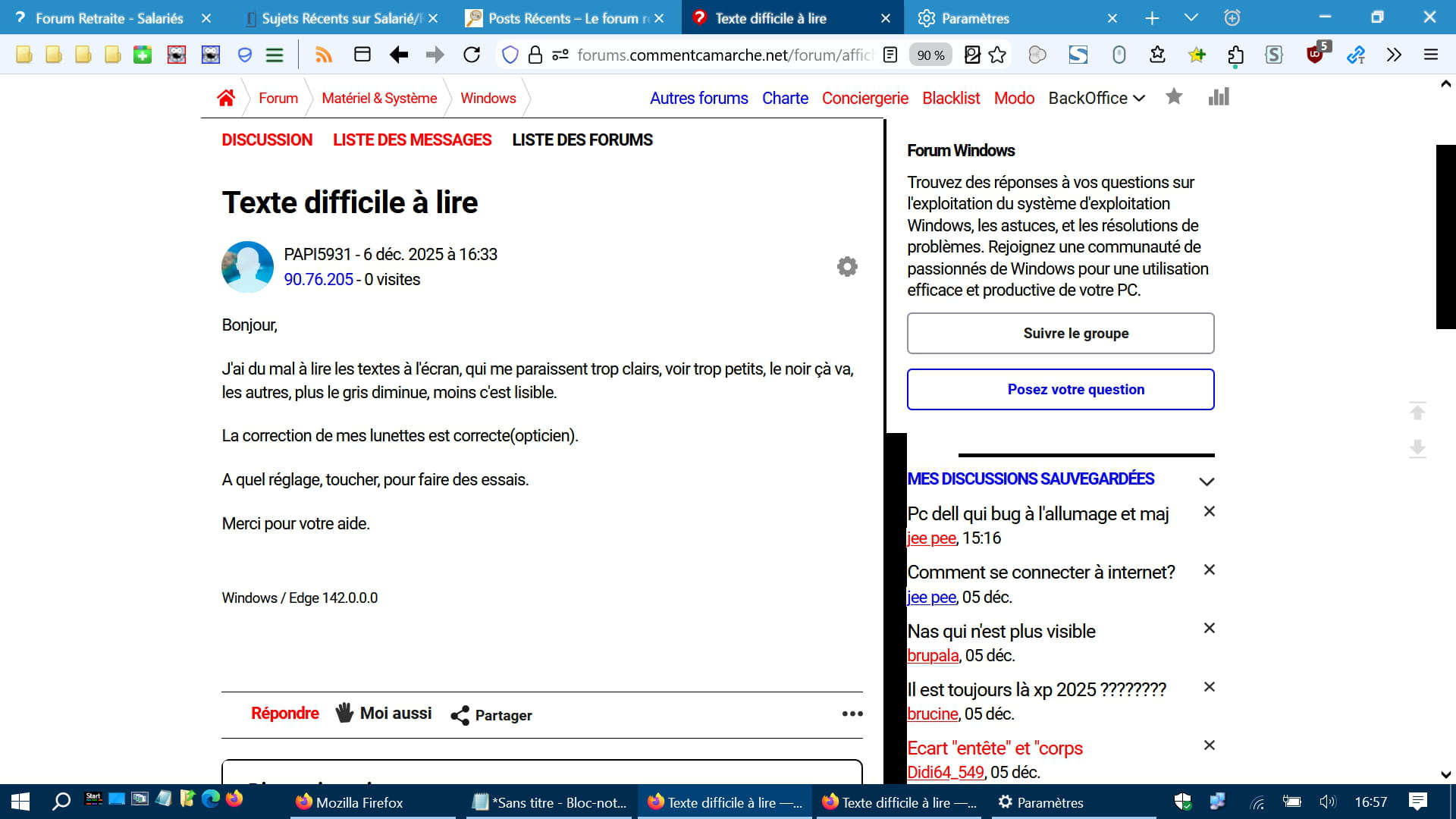 Par exemple j'utilise Firefox et en jouant sur les paramètres de contraste/accessibilité, on peut afficher tous les textes gris en noir et simplifier la page. Ainsi le Forum CCM devient