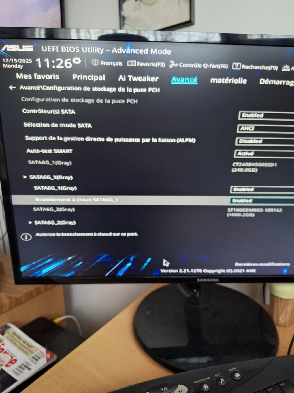 - le port m.2 doit être actif