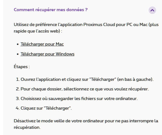 - Cloud de Proximus, comment récupérer mes fichiers ?