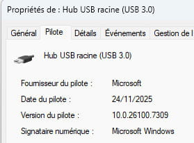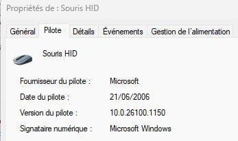 Je m'explique, j'ai branché mon émetteur de souris (Logi M185) sur un portable puis j'ai fais les mises à jour de W11. Tout allait très bien lorsque j'ai du comme chaque mise à jour Redémarrer ma souris fonctionnait parfaitement. Ensuite je suis passé sur un autre portable donc j'ai déconnecté mon émetteur et branché sur l'autre portable et là la souris ne répondait plus, je l'ai remise sur le premier portable croyant que c'était une erreur de l'autre portable et rebelote idem ma souris ne fonctionne plus ! Donc je déduit que lorsque j'ai ôté l'émetteur celui-ci a chargé un nouveau pilote suite à la mise à jour ! J'ai mis une autre souris sans fil et tout est normal mais la souris que j'ai utilisée lors de la mise à jour est toujours out sur tous les portables d'où j'en conclu qu'elle ne reconnaît plus son émetteur !