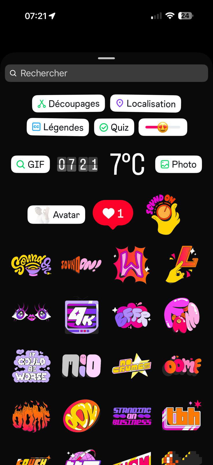 Si vous ne voyez pas certains stickers sur Instagram, vérifiez que vous disposez de la dernière version de l’application en vous rendant sur l’App Store ou sur le Google Play Store. N’oubliez pas que certains stickers ne sont pas disponibles pour les reels ou pour l’ensemble des utilisateur·ices.