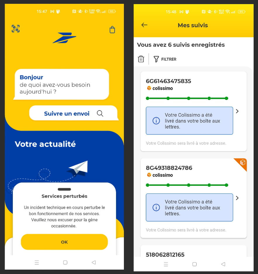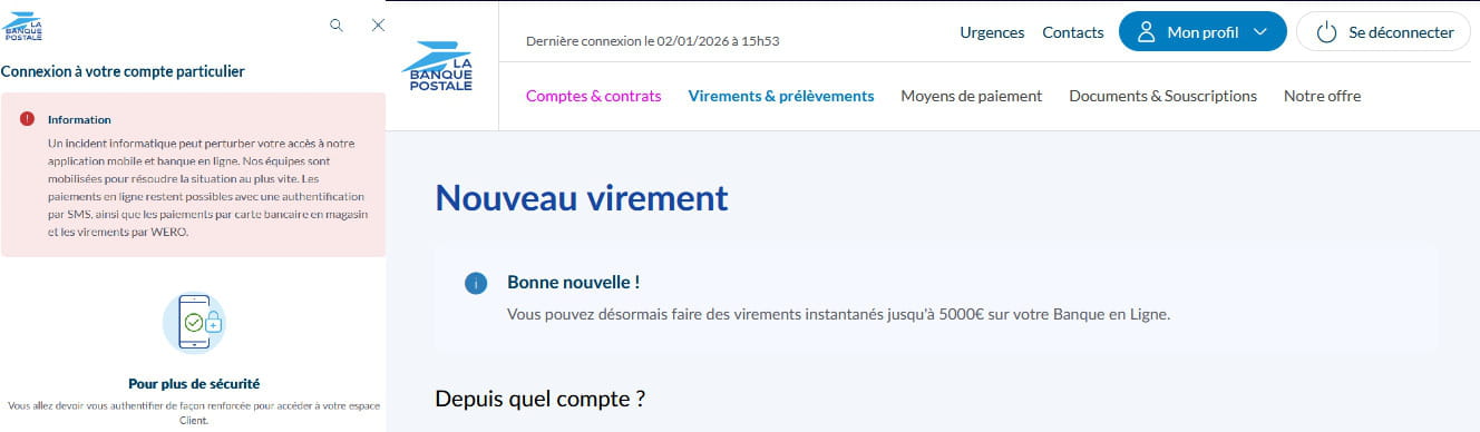 Hier soir en fin soirée,je voulais effectuer une transaction sur la banque postale et suivre un colissimo sur La Poste.