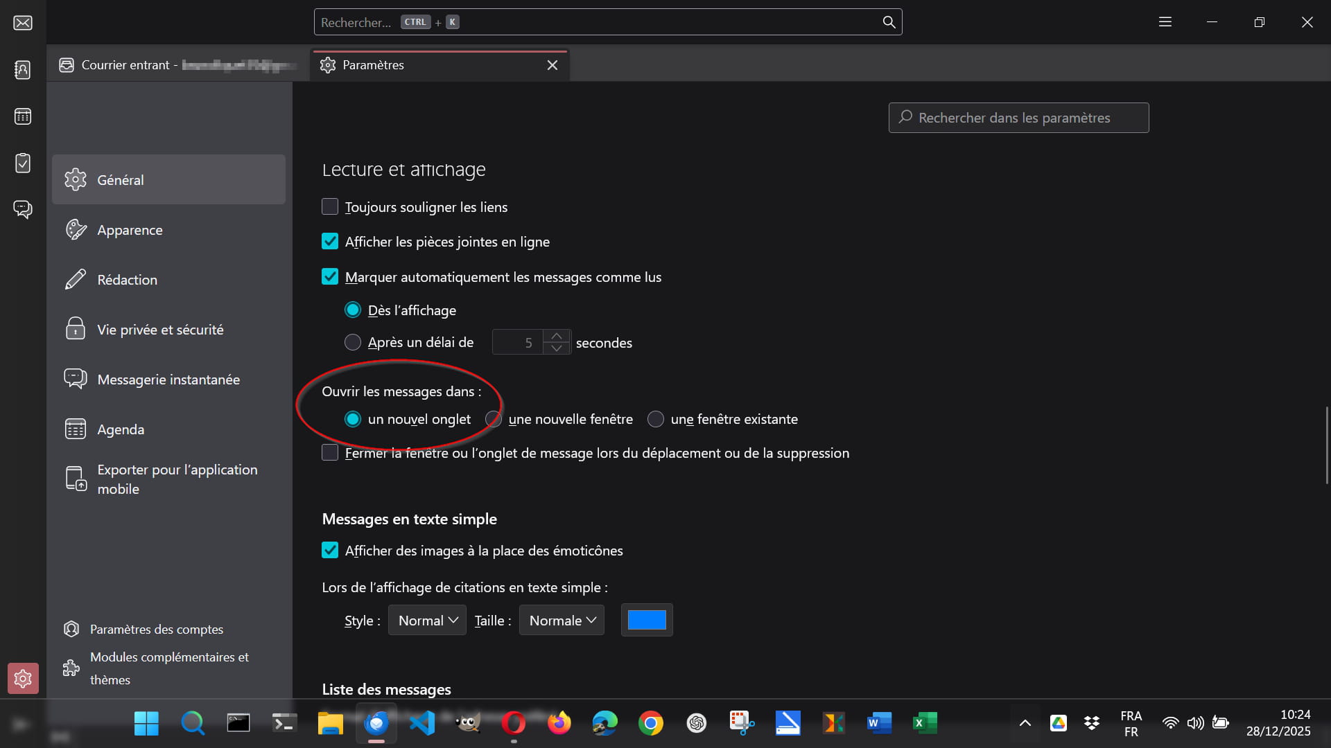 Lorsque j'ouvre un mail reçu dans outlook, depuis quelques jours, une seconde page S'ouvre. Comment faire pour que lorsque je clique sur le mail, il s'ouvre directement sur la même page ?