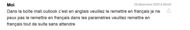 Bonjour, depuis quelques jours sur mon téléphone Samsung A33 mon application Outlook est en anglais (messages reçus, envoyés, indésirable...etc)