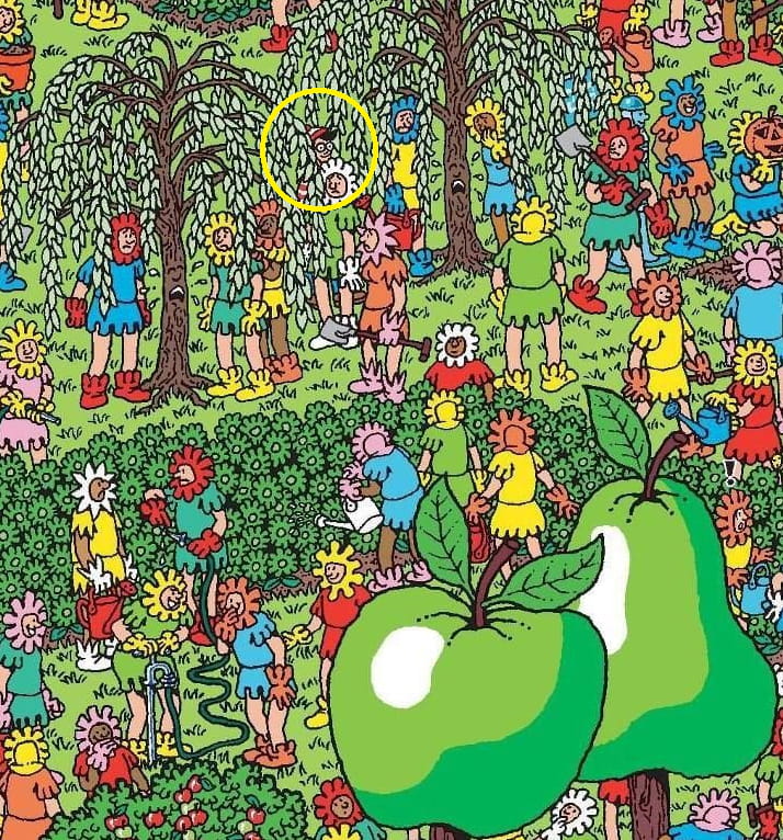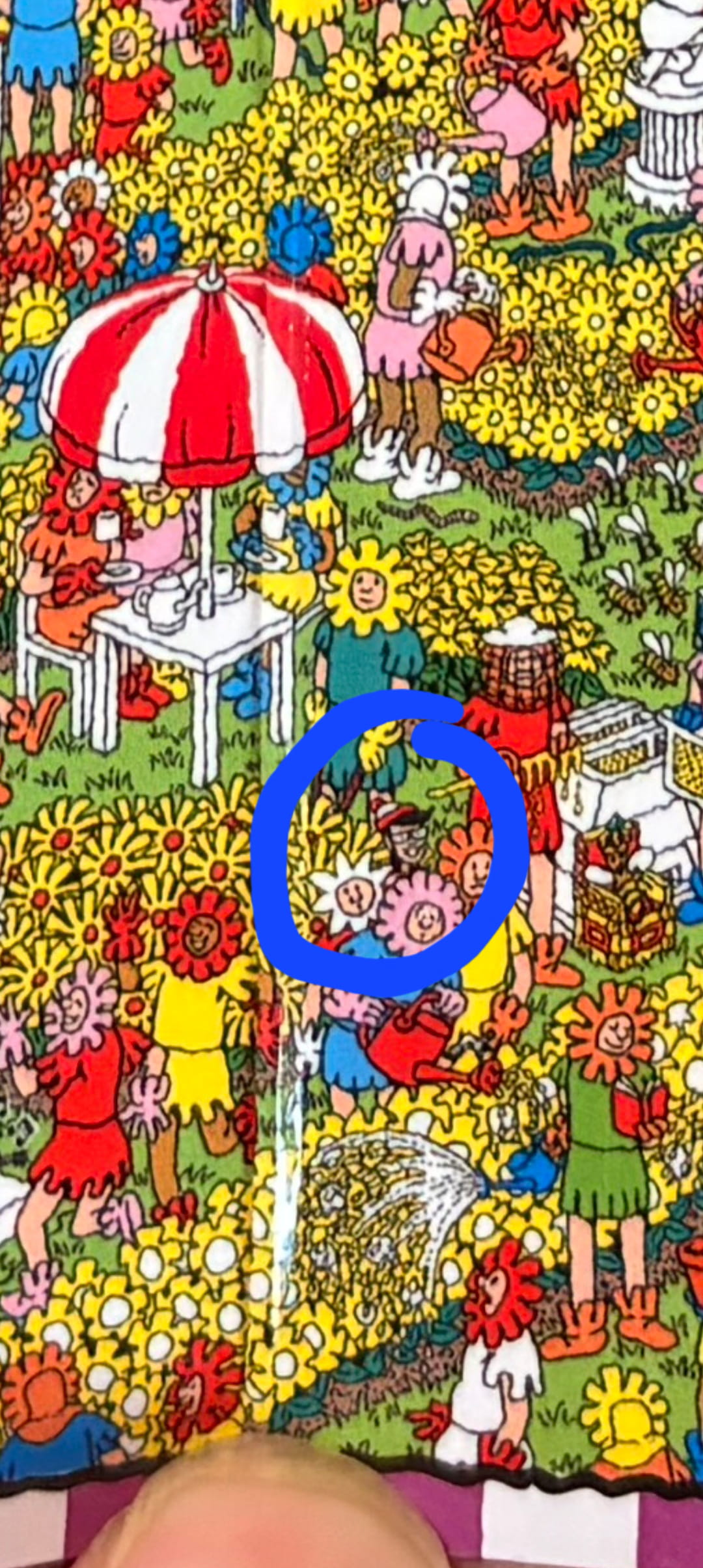 Nous jouons au jeu de société Où est Charlie ? et nous sommes bloqués sur la carte 19 intitulée « Les jardins aux mille fleurs ».