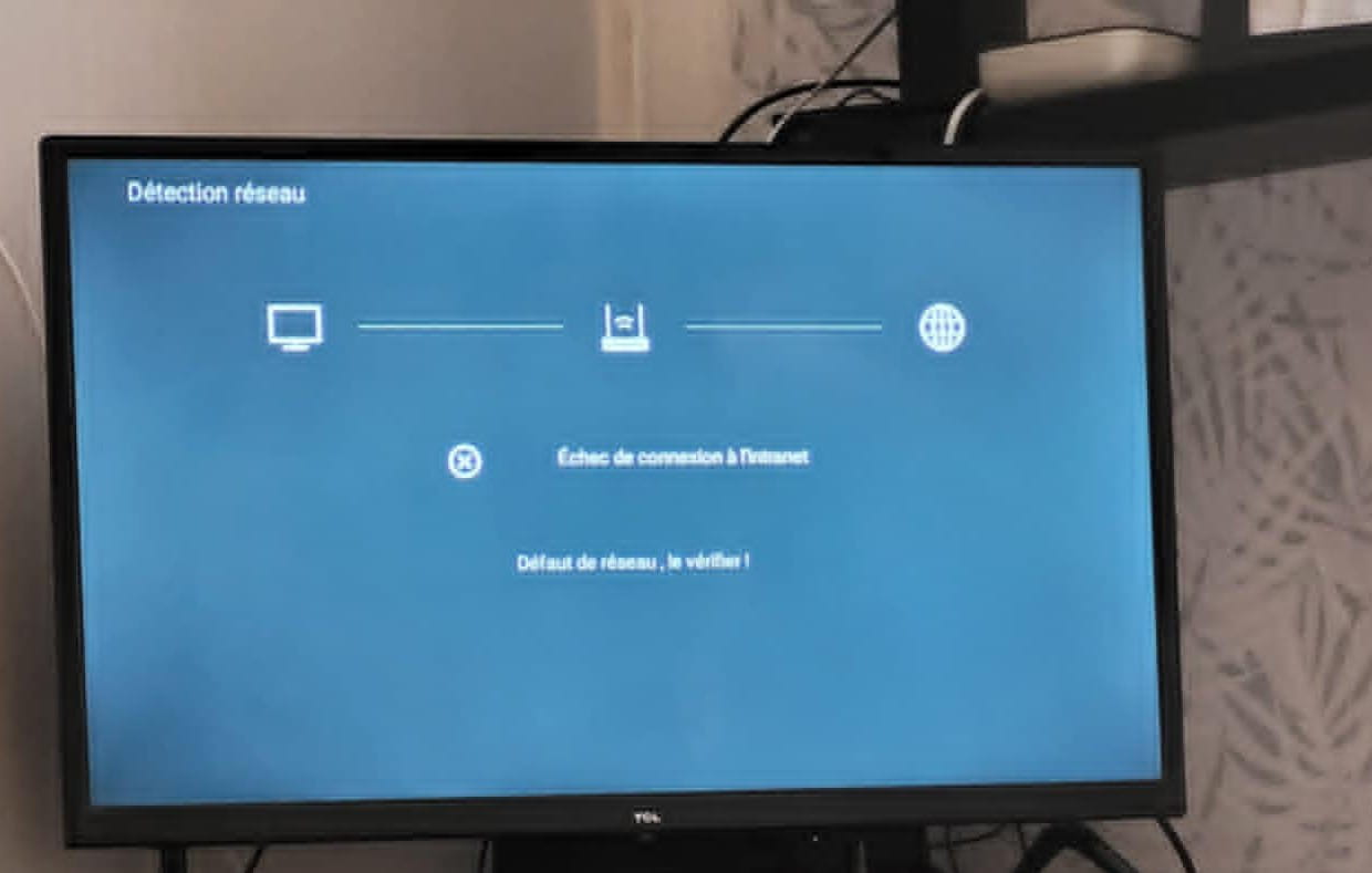 Si votre téléviseur est raccordé par un câble RJ45 à la box, revérifiez-le branchement (voir si les deux extrémités du câble RJ45 ne sont pas dégrafés ou mal insérées…) !