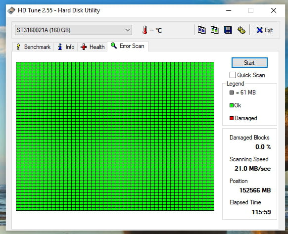 J'avais déjà fait ce test sur le DD principal interne je crois sur le PC. J'avais eu que des cases vertes à une étape.