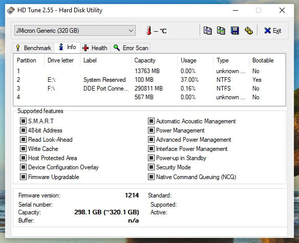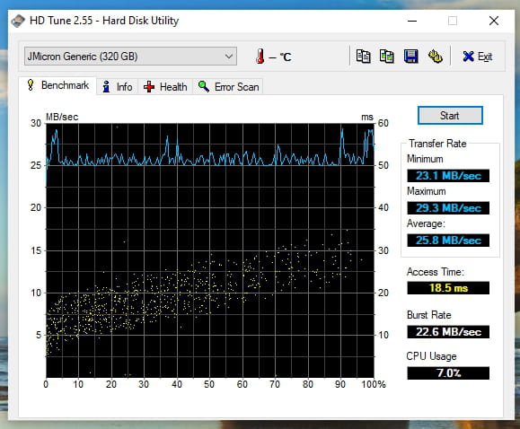 Donc tu télécharges HD_tune ici https://www.hdtune.com/files/hdtune_255.exe et l'installe sur ton PC... Tu lances les tests "Benchmarck... Health... Error Scan" l'un après l'autre, fait une capture de chaque fenêtre...l'icone de la disquette est là pour ça... et tu postes ces images sur le site "https://www.catupload.com/" sans oublier de coller le lien de chacune ici..