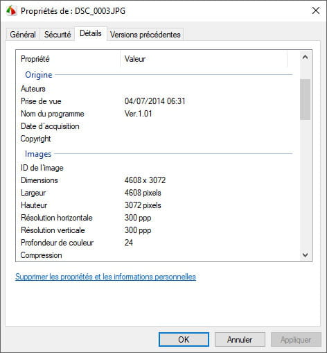 Trouvez la date, l'heure et avec quel modèle d'appareil photo elle a été prise.