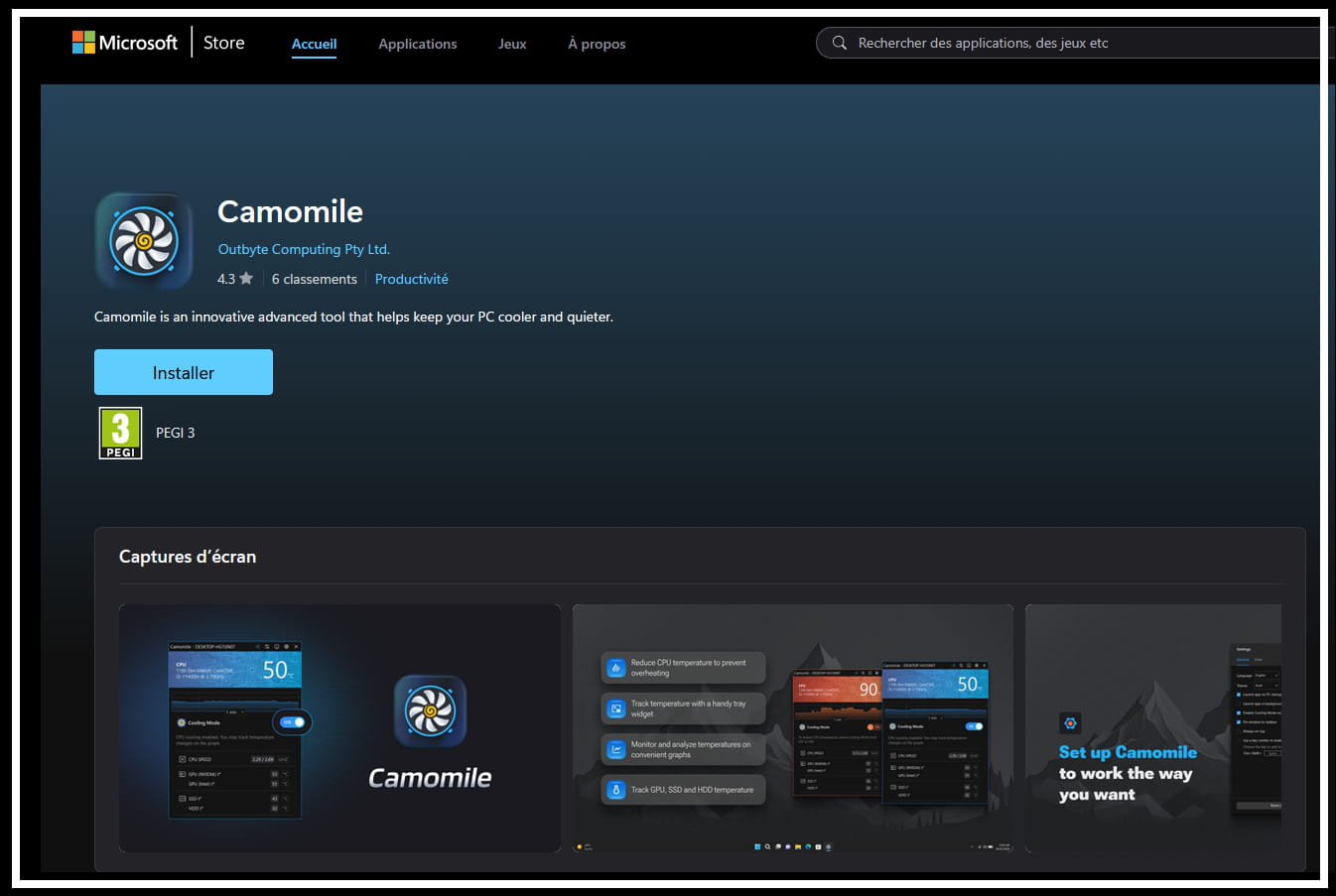 Sur le Microsoft Store ==►camomile (Outbyte Computing Pty Ltd).