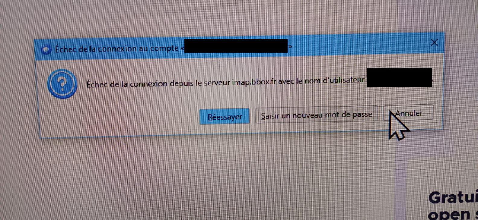 PC Windows 10, bbox (Bouygues télécom), Norton, quand on lance Thunderbird : échec de l a connexion pour le client C******.bbox.fr