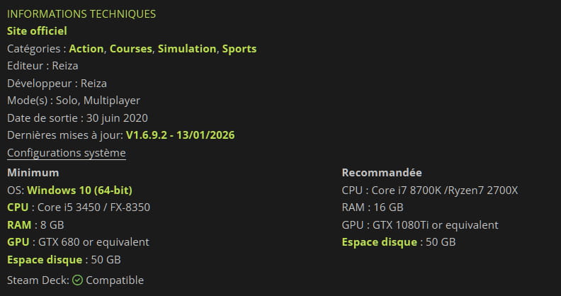 Pour ce qui est de la configuration requise du jeu en question pour Windows, voir ci-dessous et pour le volant en question, je dirais oui, mais avec un bloc d'alimentation sauf erreur.