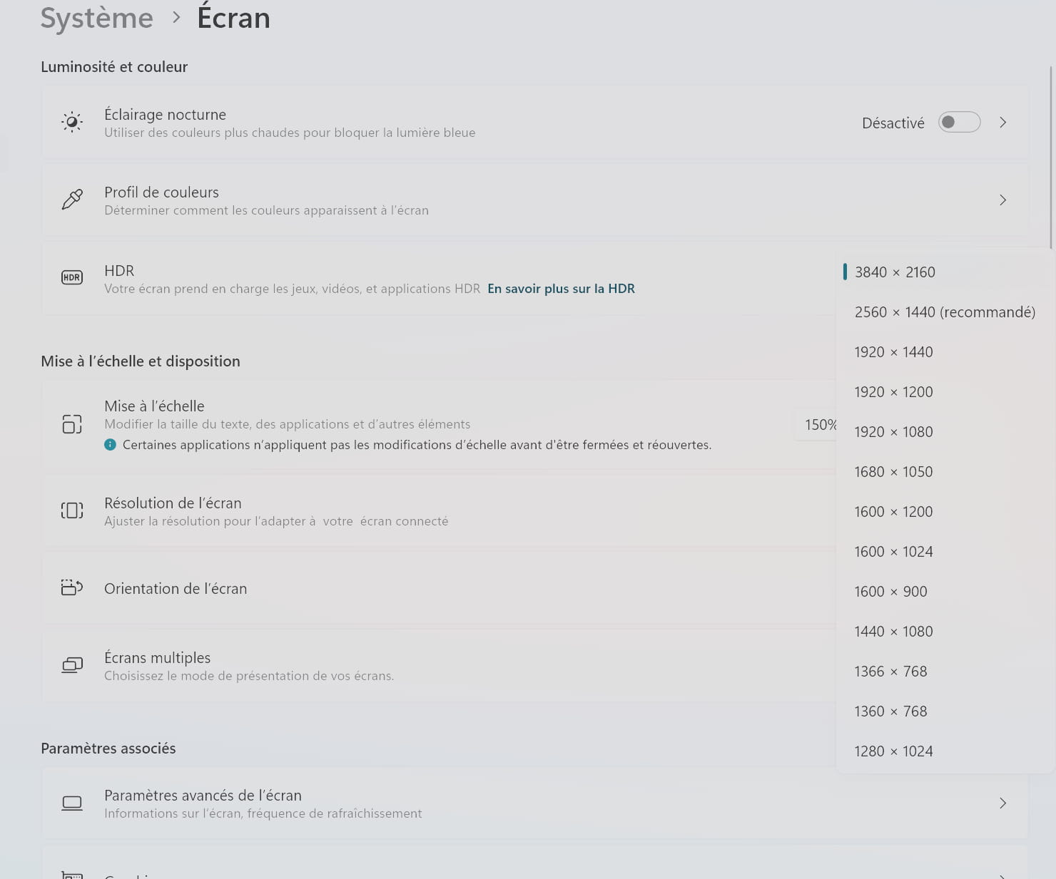 Restez en natif pour la résolution, changez plutôt l'Échelle pour le bureau et les applications à 125, 150, 175, ou 200% ou plus (J'utilise 200%) qui donne une échelle comme un écran 1080 pour les applications de bureau etc. (Non Vidéo) si vous avez de la difficulté à lire parce que c'est écrit trop petit augmentez l'Échelle.