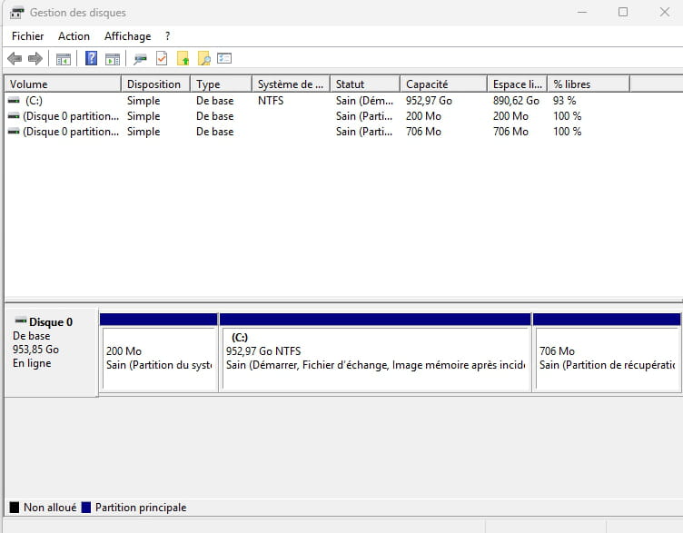 Voici la capacité de mon unique disque dur SSD : 1 To IDS NVMe