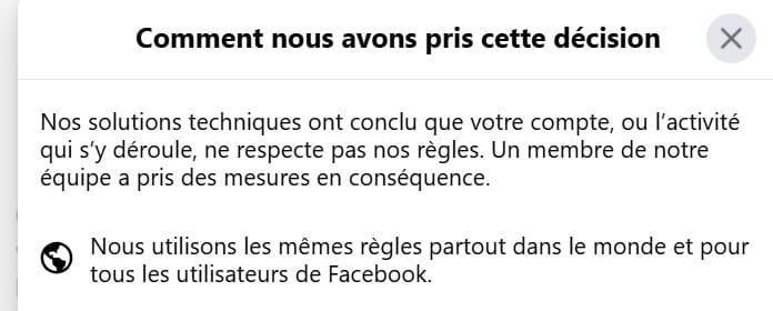 - Facebook menace de fermer mon compte