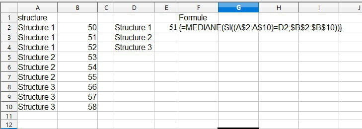 J'ai besoin de calculer l'âge médian pour chacune des structures renseignées en colonne A et non pas sur la globalité.