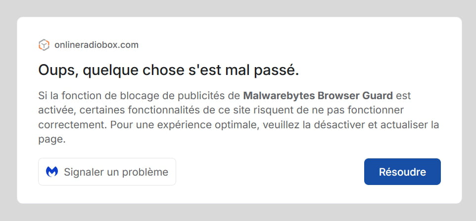 Windows / Chrome 144.0.0.0 Probléme avec le site Onlineradiobox et Google chrome et Edge, j'ai un affichage (mais je n'ai pas le browser guard dont on parle), sur Firefox je n'ai pas de problème.