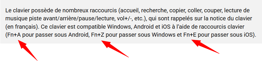 Ce clavier étant "compatible" Android/Windows/iOS, il y a un moyen de le configurer pour l'appareil ou vous désirez le connecter :
