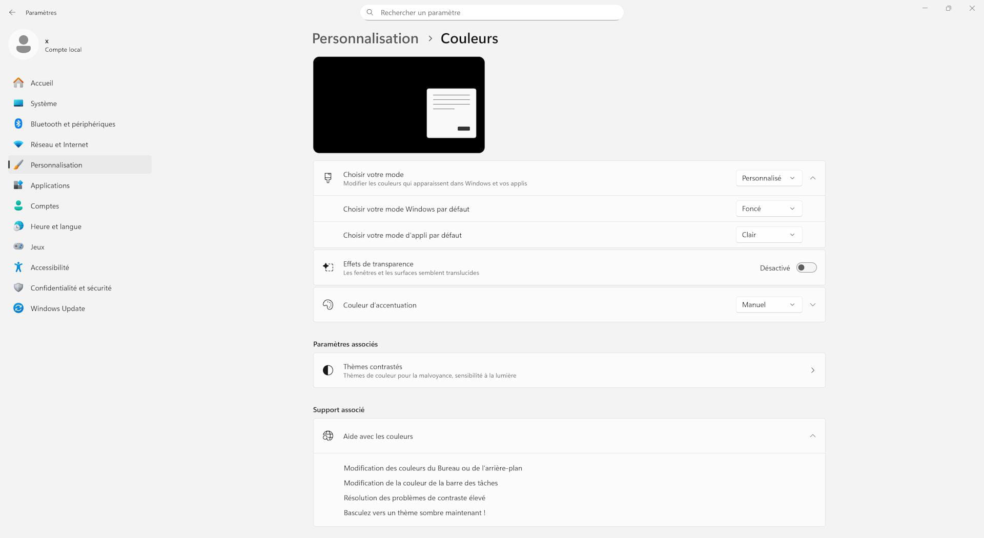 La mienne est noir Total mais pour exemple des Settings dans l'onglet TaskBar