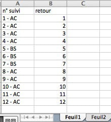 J'ai une feuille1 avec un tableau à 2 colonnes sous ce format :