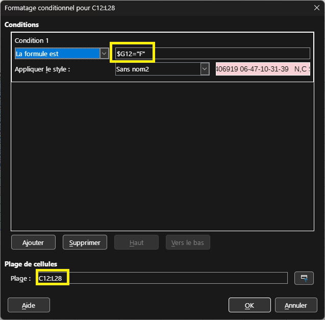 Macro ou format conditionnel