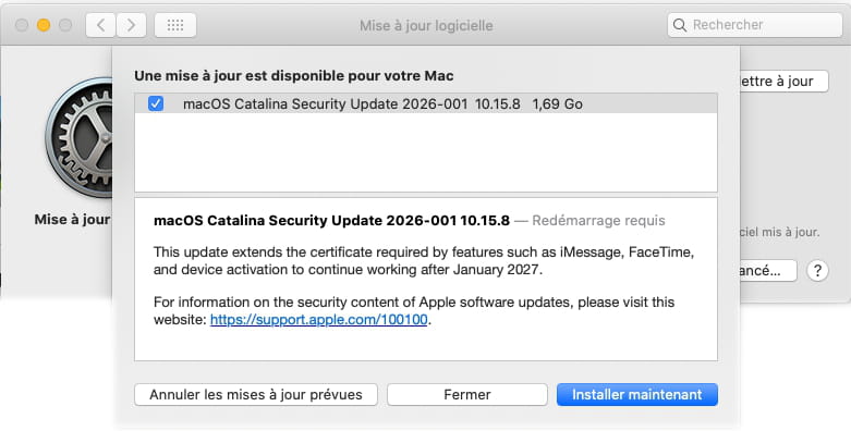 Quelqu'un d'autre que moi aurait-il reçu aujourd'hui une mise à jour macos Catalina vers la version 10.15.8 ?