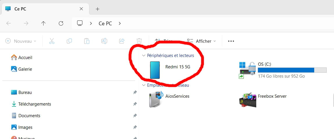 J'ai acheté un nouveau téléphone portable un Xiaomi Redmi 15 5G, avec mon ancien téléphone Xiaomi Redmi 9Tje pouvais voir les photos de celui ci sur l'écran de mon PC sous Windows 11 en branchant le téléphone acec un câble USB.