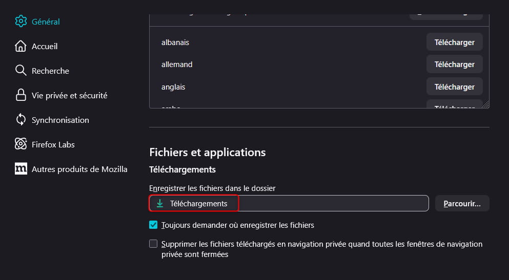 Dans le premier cas de figure, c'est le navigateur qui intervient, et où est défini un dossier de téléchargement par défaut qu'on peut modifier.