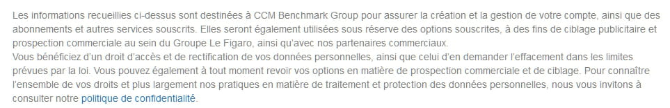 En cliquant sur le bouton, j'accepte les conditions générales,on obtient ceci !