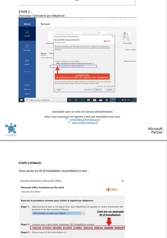 Dans le cas par exemple d'une activation par téléphone, on a après avoir entré le code de licence quelque chose de ce genre.