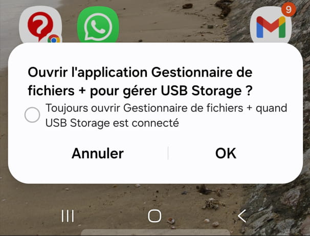 Sinon vous aurez un message d'alerte vous demandant de redémarrer le smartphone, car le périphérique a été retiré sans précautions.