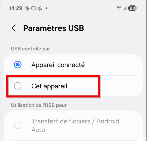 En retournant dans les notifications vous devez avoir Stockage USB ajouté.