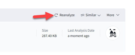 Va sur le site VirusTotal, tu cliques sur Choose file tu choisis le fichier service.exe, si le fichier a déjà été analysé clique sur la petite flèche (reanalyze) comme sur la photo :