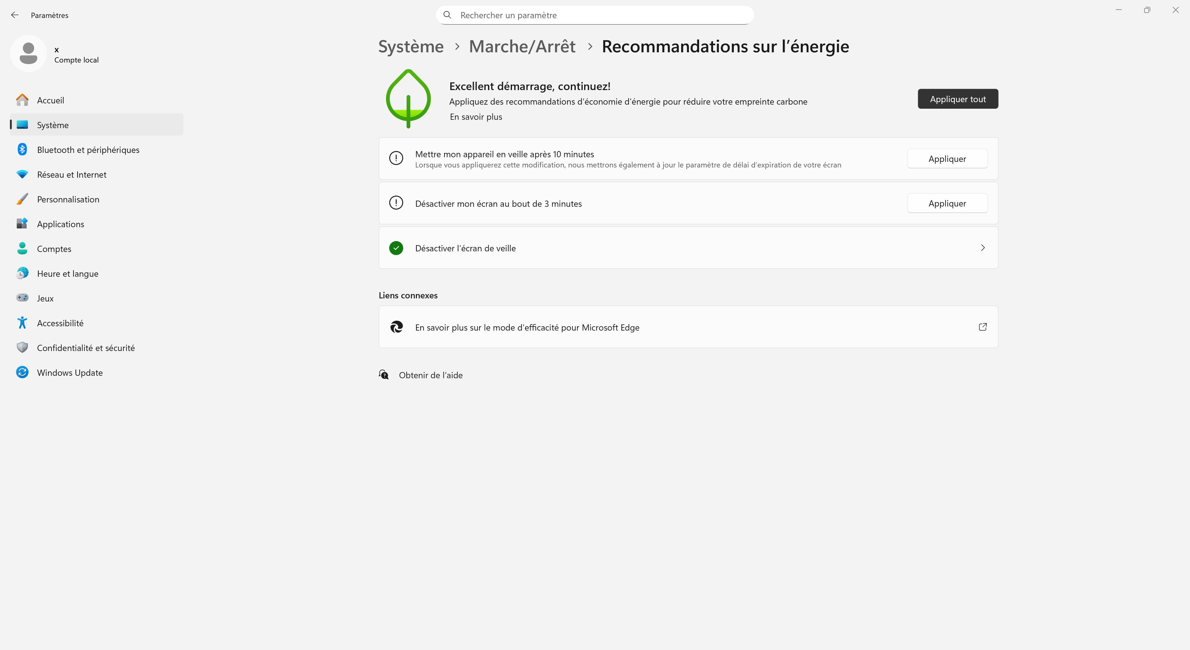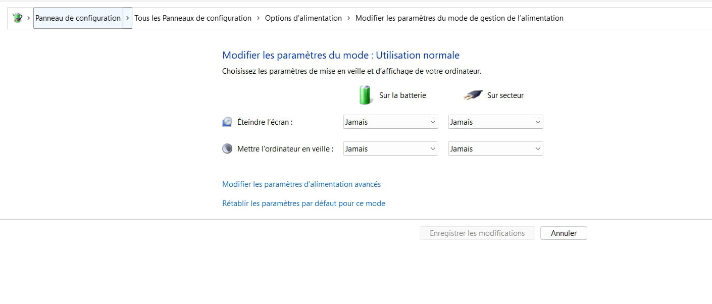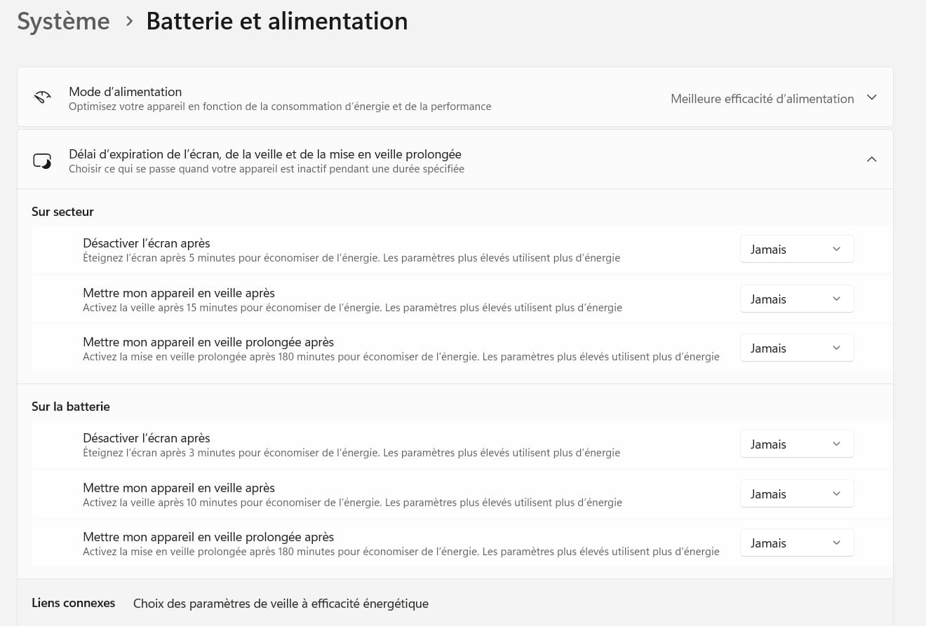 L'écran de mon PC Asus Vivobook 15 sous Windows 11se met en veille alors que la mise en veille est désactivée à la fois sur le secteur ou la batterie.
