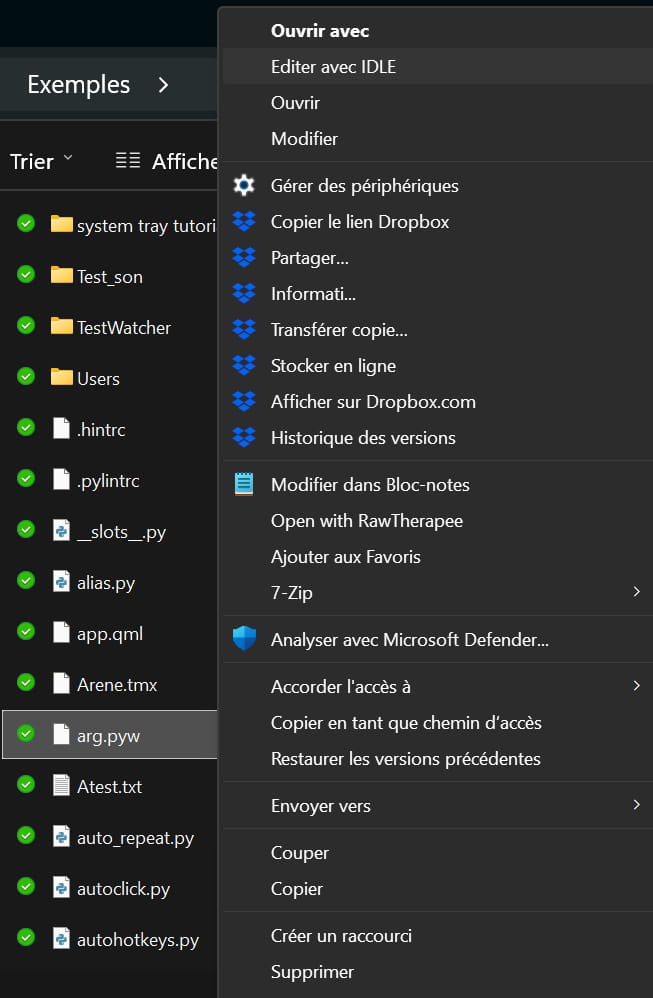 Lorsque je fait un clic droit sur un fichier .py, il y a un menu avec une option