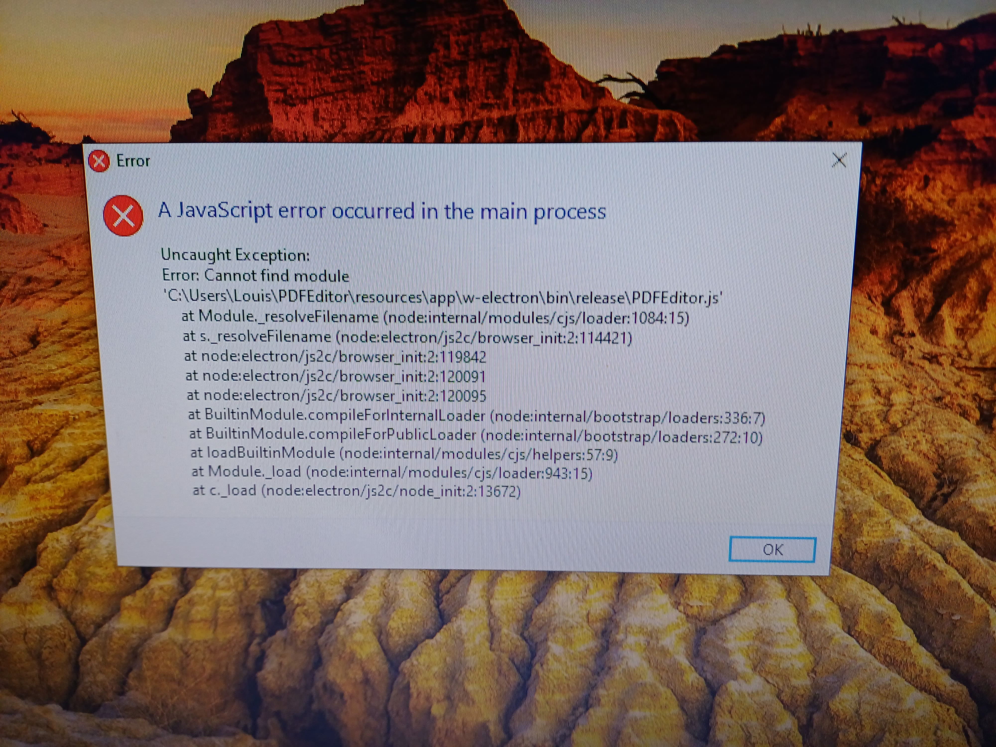 - A javascript error occurred in the main process pdf editor q