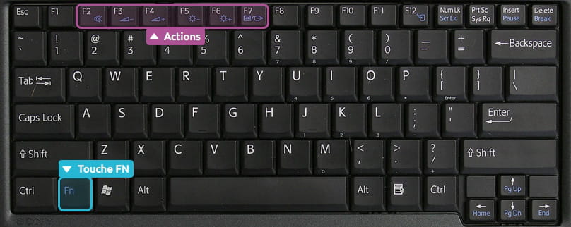Bonjour, les touches de fonction F1 F2 F3 etc on des symboles de fonction haut parleur coupé , bas haut