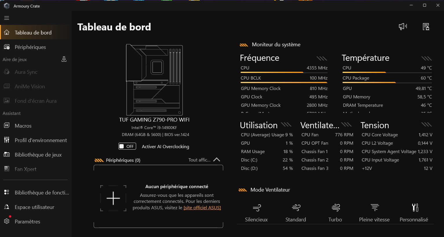 J'ai un carte mère Asus Z790 Pro-Wifi, et j'avais installé au départ "Armoury Crate" d'Asus, fourni avec la carte.