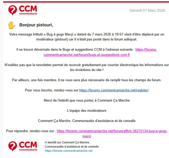 Je l'ai rectifié a la va vite,CCM ou son robot à réagit d’où mon post,et ben CCM ne fait pas les choses....<<
